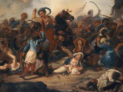 Η ιστορία της Εξόδου είναι από μόνη της δραματική σε βαθμό που δύσκολα αποτυπώνεται σε μουσείο ή κείμενο. Από το 1825, ο Κιουταχής Πασάς είχε στρατοπεδεύσει γύρω από την πόλη με στρατό 30.000 ανδρών, αποκόπτοντας κάθε ανεφοδιασμό. Μέσα στα τείχη, 9.000 ψυχές — μαχητές, γυναίκες, παιδιά — άντεξαν επί έναν χρόνο λιμό, ασθένειες και συνεχείς εφόδους. Όταν στο τέλος ήρθε η στιγμή της Εξόδου, στη νύχτα του Σαββάτου του Λαζάρου, ο σχεδιασμός προέβλεπε ταυτόχρονη αντίσπαση και διέξοδο — αλλά η προδοσία ματαίωσε το σχέδιο. Εκείνοι που δεν πρόλαβαν να φύγουν — ηλικιωμένοι, άρρωστοι, γυναίκες — επέλεξαν να ανατιναχτούν μαζί με τα πυριτιδαποθήκες παρά να αιχμαλωτιστούν. Μπροστά σ’ αυτή την πράξη, οι Φιλέλληνες όλης της Ευρώπης ταράχτηκαν — και ο Delacroix ζωγράφισε «Η Ελλάδα στα ερείπια του Μεσολογγίου», ένας πίνακας που γύρισε τον κόσμο.