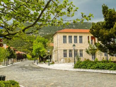 Ελληνικό Αρκαδίας: Αναχώρηση για το ΕΛΛΗΝΙΚΟ, χτισμένο στα 700–720 μ. ανάμεσα σε τρεις λόφους στις νοτιοδυτικές πλαγιές του Μαινάλου – ένα ήσυχο χωριό–«τρίλοφο» με πέτρινα σπίτια, γραφική πλατεία και πετρόχτιστες κρήνες. Στο κέντρο δεσπόζει το μπρούτζινο άγαλμα του Θεόδωρου Κολοκοτρώνη, ενώ τα πλακόστρωτα καλντερίμια και τα παλιά σπίτια με ξύλινα πορτόνια προσφέρονται για χαλαρό περπάτημα και φωτογραφίες. Παραμονή για γεύμα σε παραδοσιακή ταβέρνα και καφέ στην πλατεία.