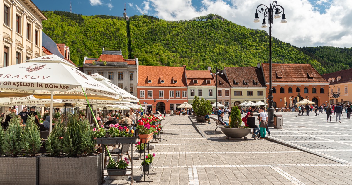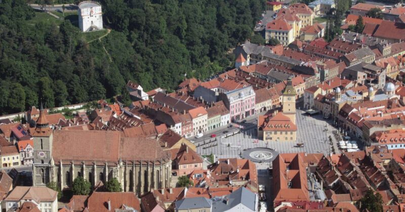 - Μπραșοβ: Παλιά Πόλη με φόντο τη Μαύρη Εκκλησία στην πλατεία.