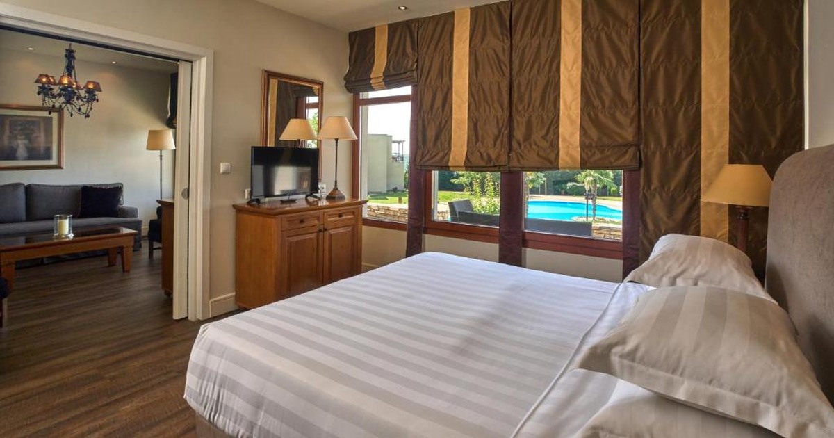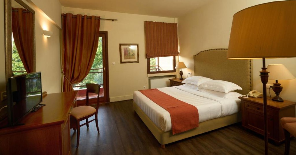 Η επιλογή του Xenia Palace δεν είναι τυχαία: το ξενοδοχείο βρίσκεται σε βάδην απόσταση από την κεντρική πλατεία της Πορταριάς και μόλις 3 λεπτά οδήγηση από τη Μακρυνίτσα, οπότε η 2η μέρα ξεκινά χωρίς χαμένο χρόνο. Η πολυτέλεια 4 αστέρων σε ορεινό, δροσερό περιβάλλον — ειδικά σε Ιούνιο που ο καύσωνας χτυπά κάτω στην Αττική — είναι ένα ουσιαστικό bonus που νιώθεις αμέσως μόλις φτάσεις.