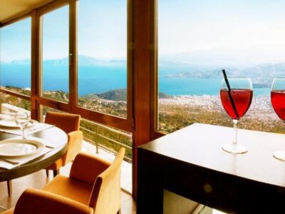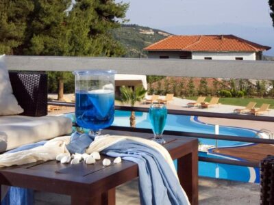 - Θέα: Παγασητικός κόλπος, Βόλος, βουνό Κένταυρος από δωμάτια και πισίνα