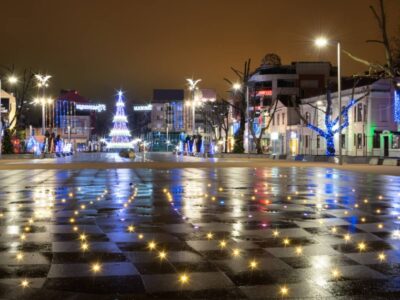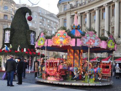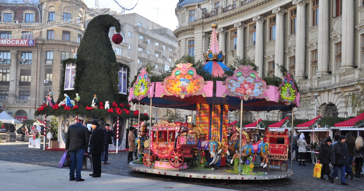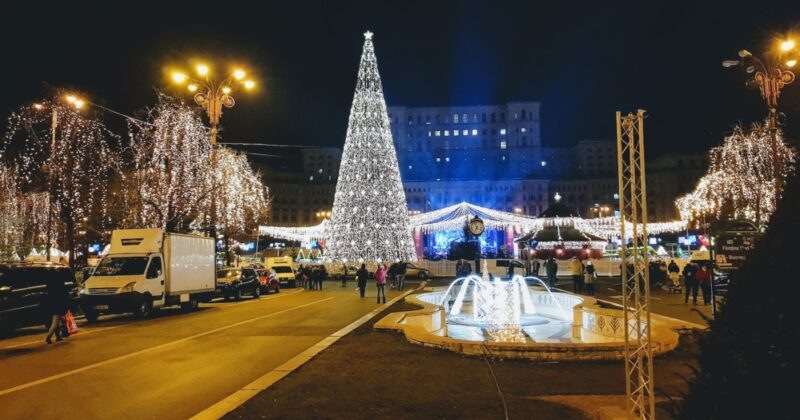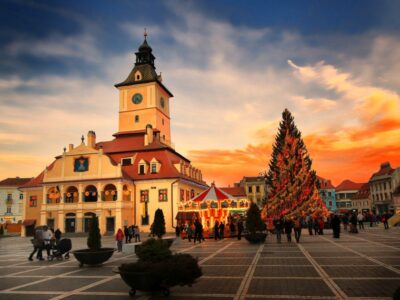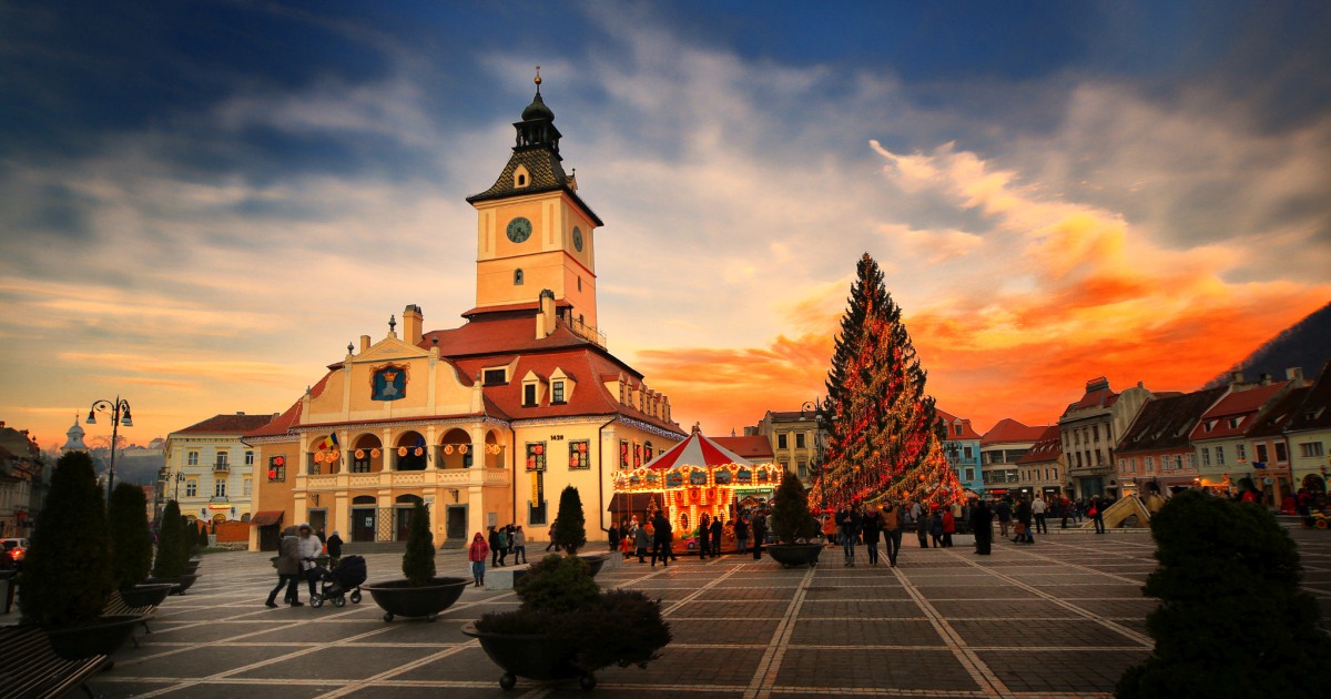 - Μπραșοβ: Πλατεία με αγορά Χριστουγέννων και φόντο τη Μαύρη Εκκλησία.