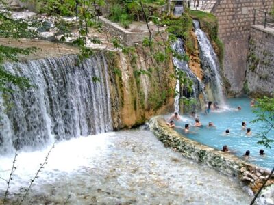 Οι εγκαταστάσεις περιλαμβάνουν εξωτερική μεγάλη πισίνα, μικρότερους λουτήρες και εσωτερικές επιλογές, ενώ ο θερμός καταρράκτης και οι περιπατητικές διαδρομές κατά μήκος του ρέματος ολοκληρώνουν μια εμπειρία ευεξίας που ταιριάζει ιδανικά στο πρόγραμμα της 2ης ημέρας.