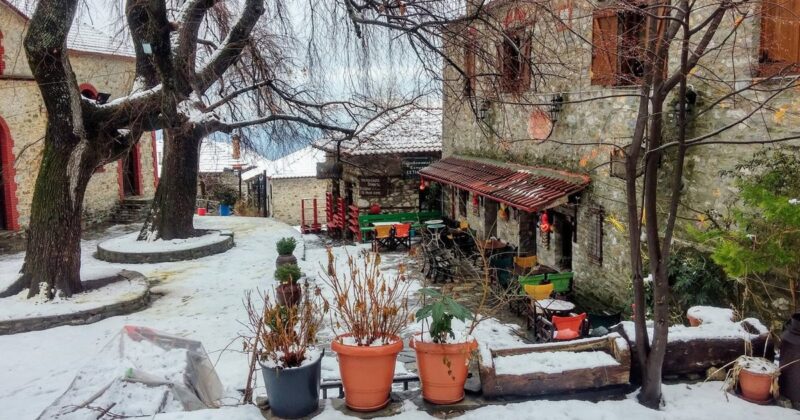 Η ατμόσφαιρα τον χειμώνα είναι γιορτινή: μυρωδιές από ξύλα στα τζάκια, μικρά μαγαζιά με τοπικά προϊόντα (μέλια, τσίπουρα, γλυκά) και ζεστές γωνιές για καφέ ή μεσημεριανό. Είναι η πιο όμορφη κορύφωση της εκδρομής πριν την επιστροφή, ένας τόπος που προσφέρει αυθεντικό ορεινό σκηνικό χωρίς να χάνει την κομψότητά του.