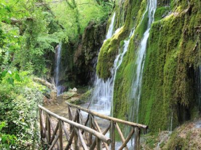 Το μονοπάτι για να φτάσεις στους καταρράκτες περνά μέσα από δάσος και ακούς το νερό πριν το δεις — μια ηχητική προειδοποίηση για αυτό που σε περιμένει στη στροφή του μονοπατιού. Συνολικά τρεις διαδοχικοί καταρράκτες και δύο μικρές λίμνες σχηματίζουν μια σειρά τοπίων που η άνοιξη — με τα νερά σε πλήρη ροή μετά τις βροχές — προβάλλει στο καλύτερό της. Ο 1ος Μαΐου και το ανοιξιάτικο πράσινο δεν θα μπορούσαν να συναντηθούν σε καλύτερο σκηνικό.