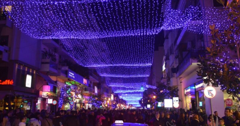 Η εορταστική καρδιά της πόλης χτυπά στην παραλία «ΗΡΩΟ», όπου από τις αρχές Δεκεμβρίου γίνεται η τελετή φωταγώγησης του δέντρου με μεγάλη συναυλία και πρόγραμμα εκδηλώσεων που απλώνεται σε πλατείες και παραλιακή ζώνη. Τα events ποικίλλουν από συναυλίες και χορωδίες μέχρι θεματικές δράσεις, με τη βόλτα στο φωταγωγημένο λιμάνι να είναι το πιο χαρακτηριστικό «πρέπει» των ημερών. Η ατμόσφαιρα συμπληρώνεται ιδανικά με στάσεις στα τσιπουράδικα της παραλίας για μεζέδες και παρέα.